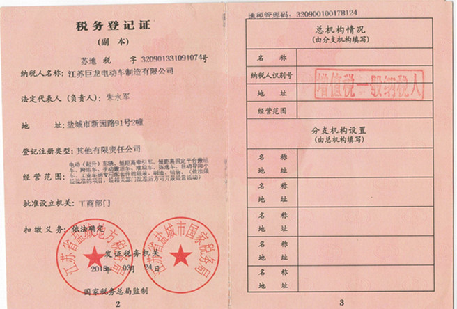• 稅務登記證
